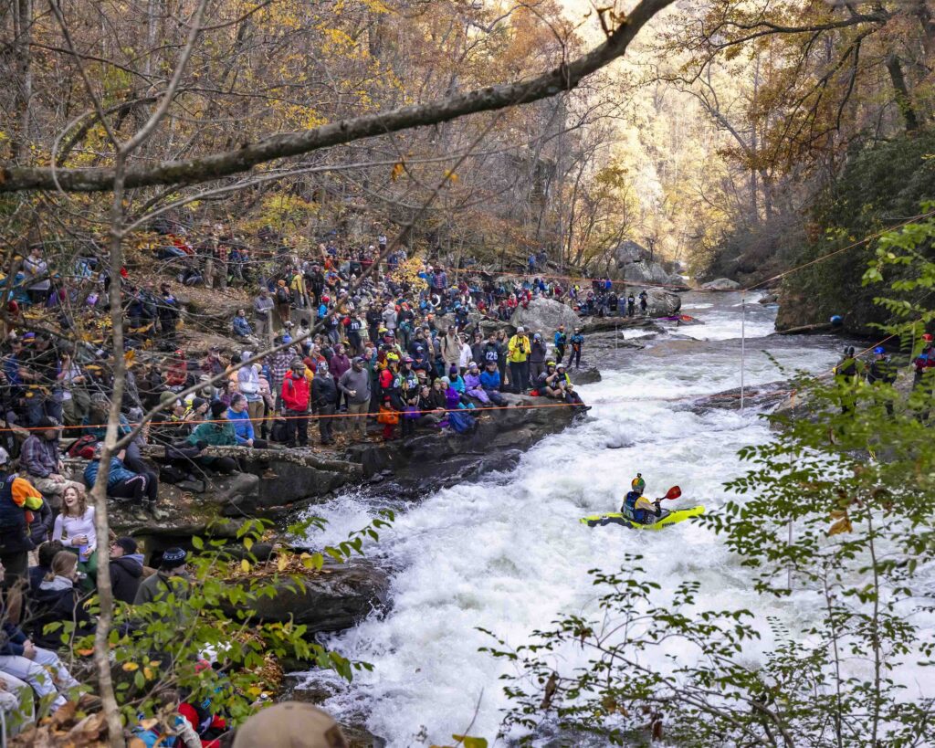 The NRS Green Race Party will be in the cove and is right at the trailhead of the Green River Cove Trail. Avoid the parking and avoid the crowds by hiking this route. This route does still require you to go down the steep section off of Pulliam Creek Trail. Please use extreme caution as the trail was damaged during Helene and is very narrow and steep in sections.